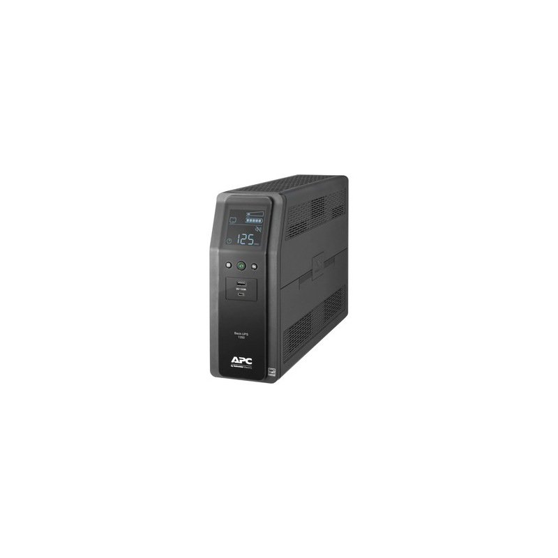 APC Back-UPS Pro 1350VA Tower UPS, 120V, with Automatic Voltage Regulation (AVR), LCD interface, and two USB charging ports. Outfitted with 10 NEMA outlets, including four surge-protected, it provides essential protection against power surges. This model is designed to maintain power supply and safeguard your electronic devices during outages. Ideal for home or office use, it ensures reliable performance and peace of mind.