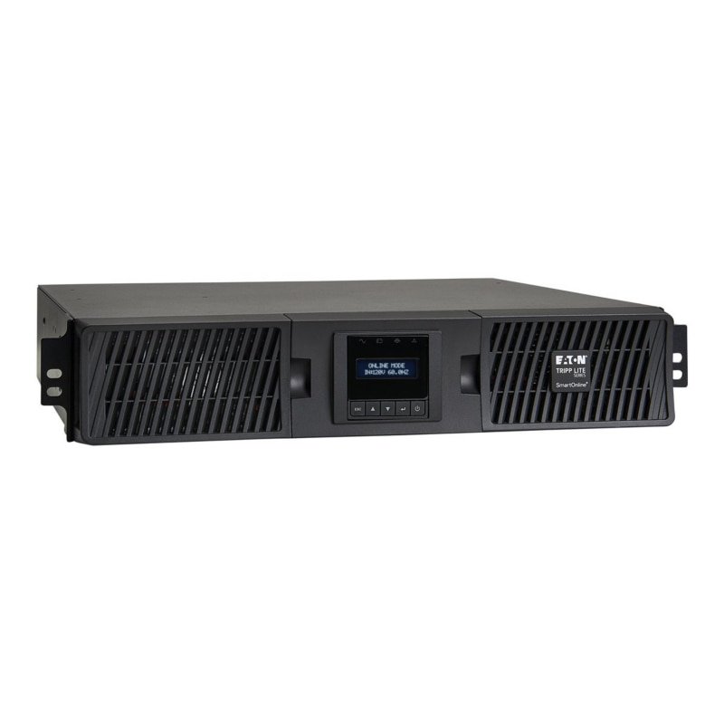 Eaton Tripp Lite Smart Online UPS with a capacity of 3000VA and 2700W. Output Type: Sine Wave at 120V. Number of Outlets: 7. Features: LCD display, USB and DB9 ports for connectivity, designed for extended runtime. Compliance: TAA-compliant. Form Factor: 2U rackmount. Ideal for protecting critical devices and ensuring reliable power supply during outages. Dimensions and weight specifications are optimized for efficient installation in server racks.