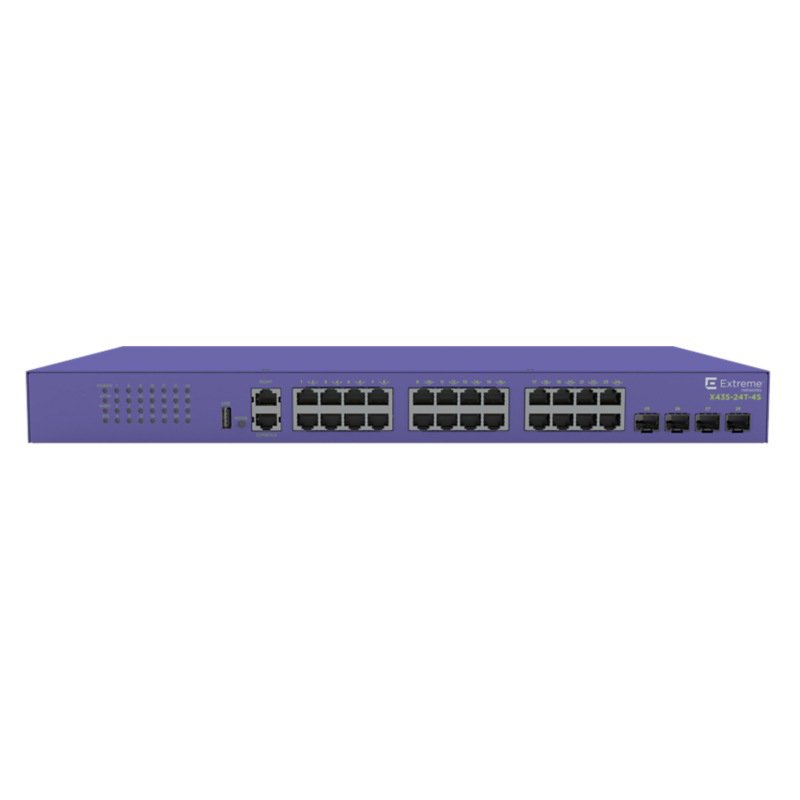 Extreme Networks ExtremeSwitching X435-24T-4S – managed switch with 24 ports, suitable for rack mounting. This device provides advanced network management features, ensuring optimal performance in enterprise environments. Designed for reliability and scalability, the X435-24T-4S enhances connectivity and data flow. Ideal for businesses looking to upgrade their network infrastructure, it supports extensive networking applications while ensuring efficient data handling.